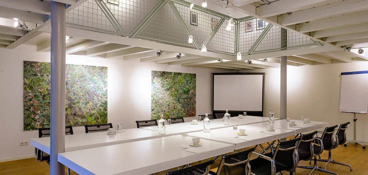 De Regiekamer is ideaal voor vergaderingen en trainingen, maar ook perfect voor een diner in intieme kring. De elegante inrichting creëert een inspirerende sfeer, terwijl de openslaande deuren een prachtig uitzicht bieden op de tuin.